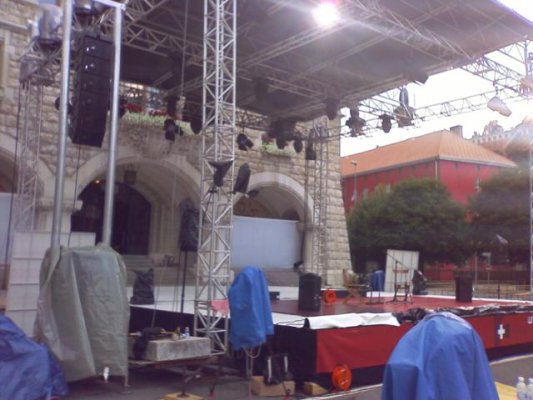 La fête nationale sous les yeux des téléspectateurs suisses sera ici au Locle ! Les préparatifs vont bon train, c’est un véritable studio qui s’installe devant l’hôtel-de-ville et le plateu est impressionnant.