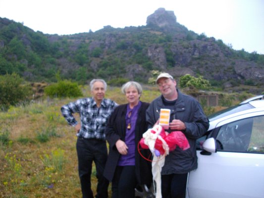 Pour ce déplacement dans L’Hérault, comme il est de courte durée, je ne suis pas venu avec beaucoup de matériel, comme ont dit, juste l’essentiel, pas plus. Loin de moi de penser que je ferai de l’activité radio quelconque qui de plus est sous la pluie. Pourtant… Tout commence mercredi soir à notre arrivée, Guy F1DMG de Montpellier me dit qu’un ballon sonde météo devrait s’échouer non loin de chez moi près du lac du Salagou, lâché à Nimes à 1h15 et il resterait juste aller le récupérer le matin. Mais malheureusement, contrairement à la prévision, il fini sa course vers Roquebrun, trop loin pour aller le chercher. Puis il vient le lâché de 13h15 mais cette fois, la prévision de vol donne comme point d’impact à côté du Caylar, c’est à 15 minutes d’ici. Je motive mon frère, on démarre vers 15h. René F5NVP, Yves F5ONG et Guy F1DMG par radio me donnent la position du ballon. Les deux sont loin et le perdent à 1400m d’altitude, donc à 700m du sol. Il ne fallait pas compter sur une position précise pour le récupérer. On cherche d’abord près du Caylar et cela ne donne rien. Ensuite on se déplace aux abord de la A75 et on reçoit des signaux forts aux à côté d’une station de MétéoFrance, ce qui aurait été le comble pour un ballon sonde météo de s’y échouer… Mais là aussi cela ne donne rien. Nous somme trempés jusqu’aux os, mais René nous demande de lever un doute le long de la A75 à 3 Km de là. On trouve finalement des bons signaux, mais impossible de déterminer la direction juste avec un petit THF7… Finalement Guy et Nicole (F1DMG et F1ERT) décident de monter vers nous depuis Montpellier pour au moins décoder une trame permettant de connaître la position exacte du ballon. Nous le rejoignons guidé par René F5NVP. Nous voilà réunis à moins de 300m et quasi sans signal ! Il se trouvait sur une montagne mais en contrebas. La seule solution était de monter de face, c’est raide et ça glisse. Finalement mon frère a retrouvé le ballon le premier par terre au pieds des arbustes. Ensuite la redescende périlleuse, tout est mouillé et ça glisse tout autant mais ouf, on l’a eu !!!
