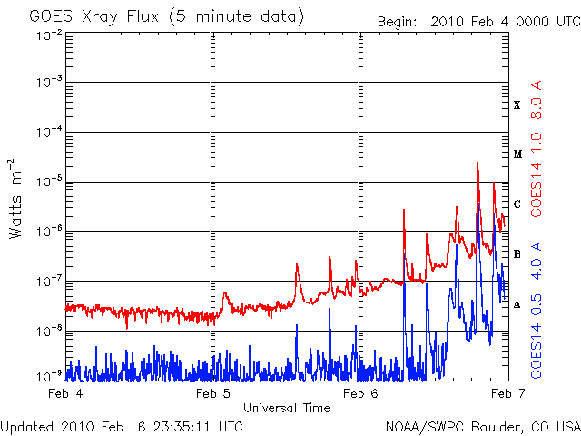Le soleil semble donner un regain d’activité ces jours, comme le montre une capture du graphe de ce matin (minuit).