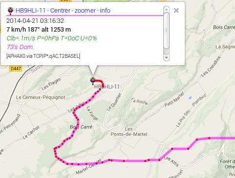 Il se pourrait que la nuit prochaine la RS qui s’envole de Payerne à 1h locale se posera pas très loin du QRA… mais demain je dois aller travailler et il ne sera pas possible de la récupérer avant le soir, pour autant que j’aie la position exacte car la batterie de la sonde ne tiendra pas si longtemps… A suivre 🙂